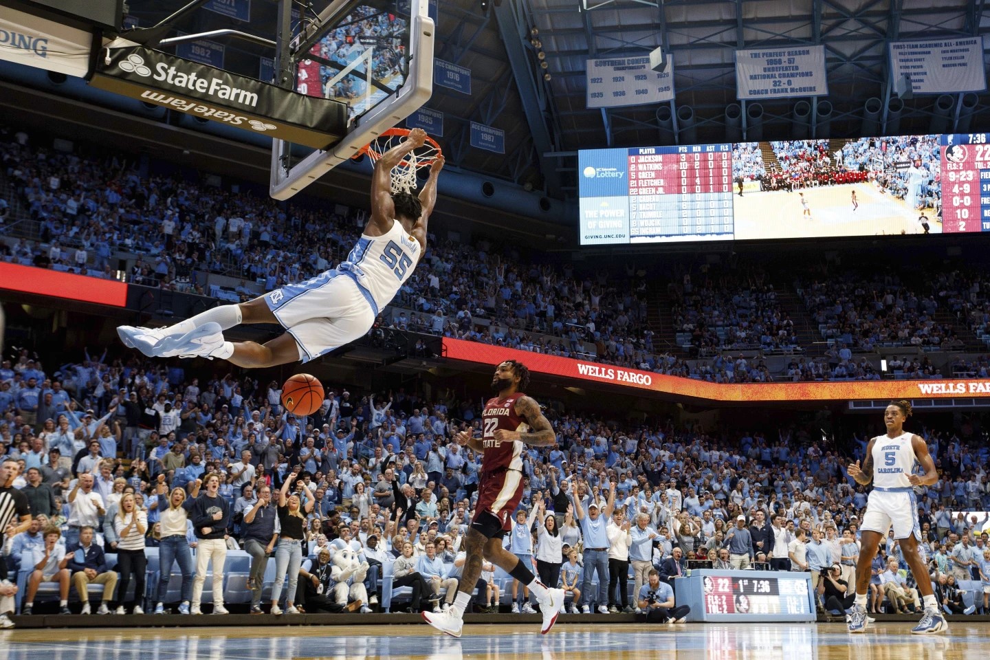 Harrison Ingram dunk unc men’s basketball fsu 2023 AP Photo Ben McKeown