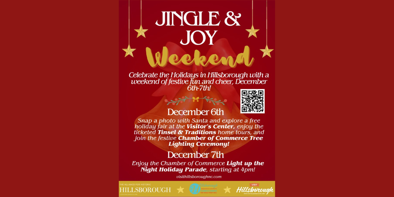 Holiday season is here, and this weekend is “Jingle & Joy” time in Hillsborough! Everyone’s invited to head downtown for the Tinsel & Traditions home tour from 3-8 p.m. Saturday, December 6, with the holiday tree lighting at 5:30 that evening; then head back downtown Sunday, December 7, for the annual Light Up The Night Holiday Parade beginning at 4 p.m. And all month long, you can visit downtown businesses and check out the entries in this year’s Homes for the Holidays gingerbread home contest.