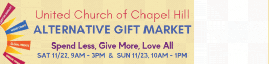 Henry Lister of the United Church of Chapel Hill and Amy Bourret of Bull City Fair Trade spoke with 97.9 The Hill’s Andrew Stuckey on Thursday, November 20. They discussed this weekend’s upcoming Alternative Gift Market, which will be at the United Church of Chapel Hill at 1321 MLK Blvd. on Saturday and Sunday this weekend. They talked about the advantage of giving “gifts that give twice,” their “God’s Bidding Silent Auction,” and more.