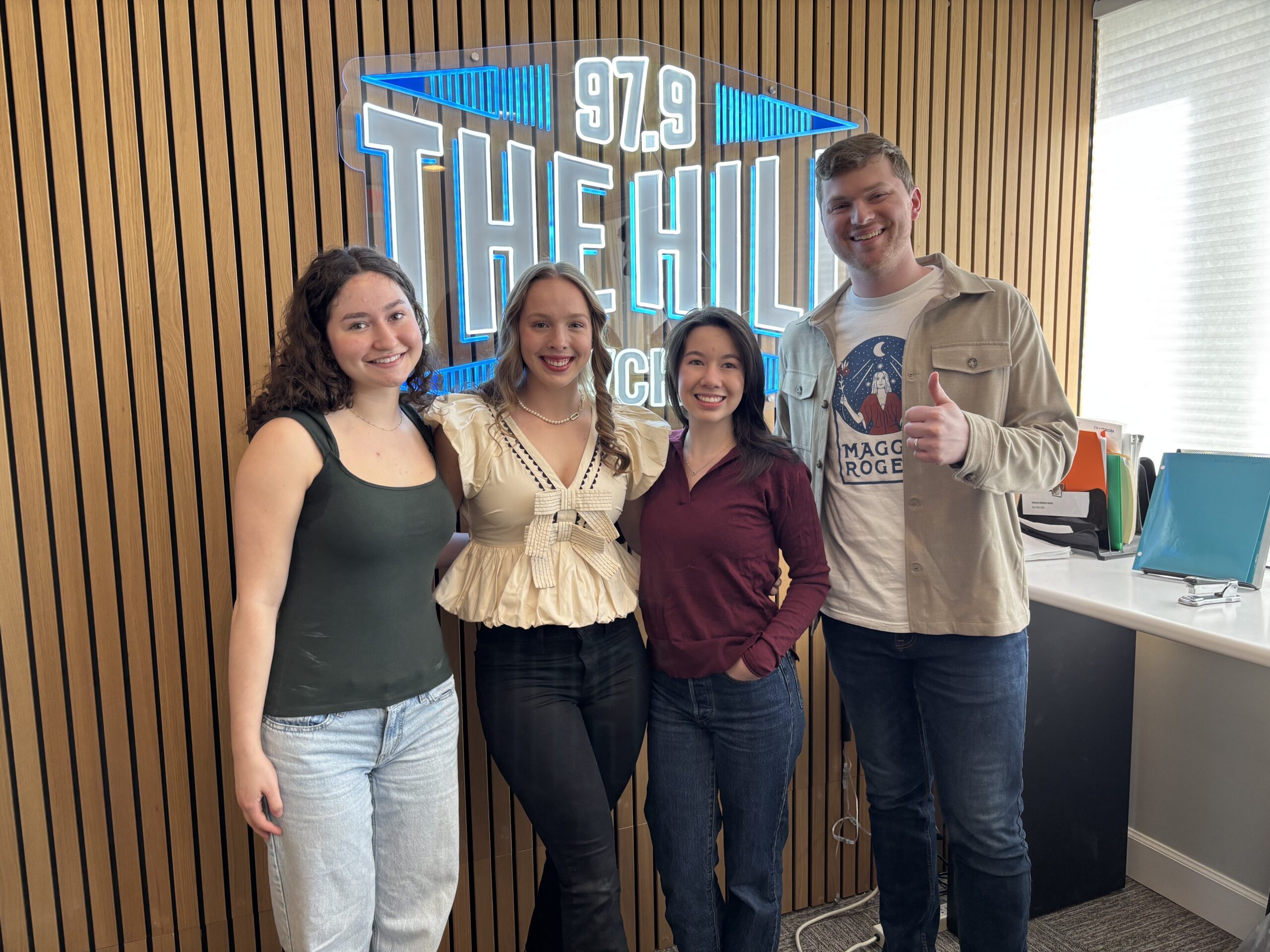 From left to right: Ellie Zerden, Aylin McGowan and Natalie Fitzhugh of Project Graduation join 97.9 The Hill’s Brighton McConnell in studio. (Photo by the Chapel Hill Media Group.)