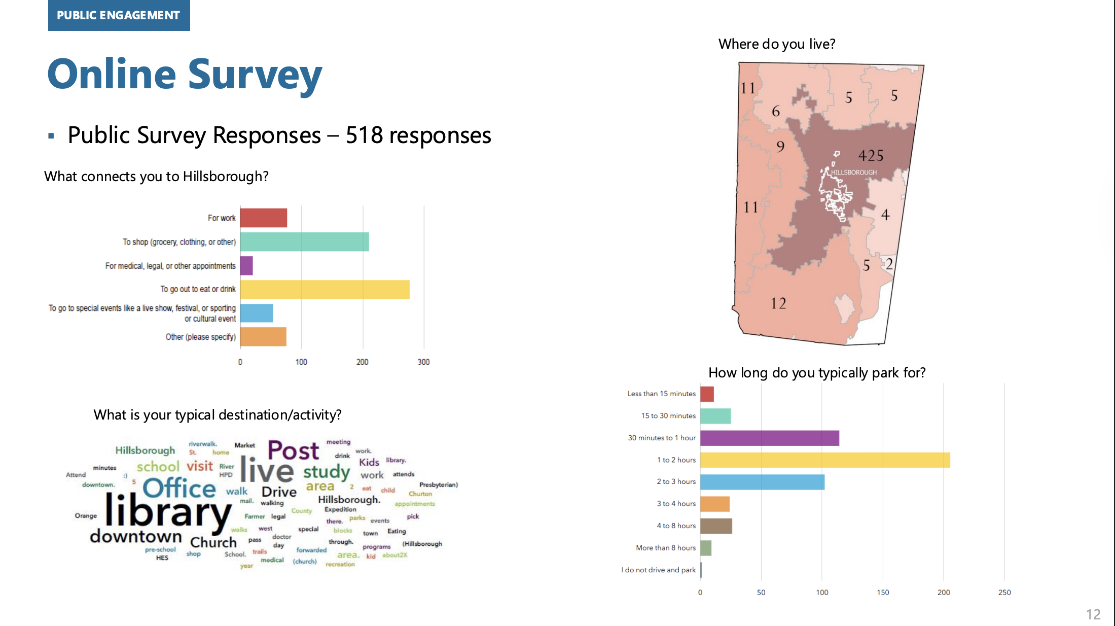 The parking study included public engagement opportunities, like surveying the community about their parking habits in Hillsborough. (Image via Nelson Nygaard Consulting.)