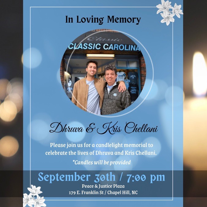 Organizers are asking those around Chapel Hill who knew the Chellanis to gather at the Peace & Justice Plaza on East Franklin Street on Saturday night — just a short distance away from their apparel store, Classic Carolina. The Chapel Hill shop shared the event, which will begin at 7 p.m., on its social media pages on Wednesday.