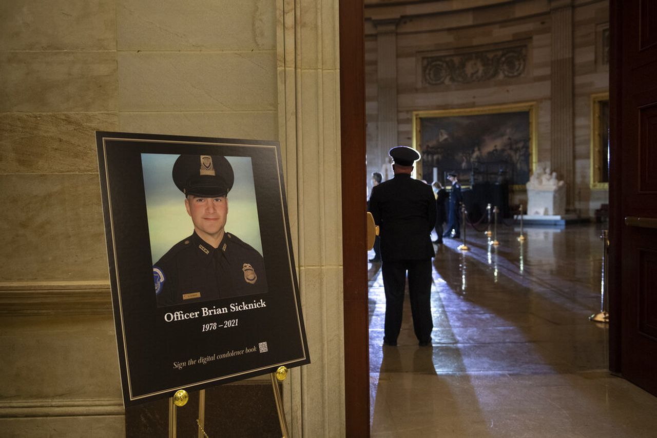 Photo from Officer Sicknick’s memorial (Photo via AP/Brendan Smialowski)