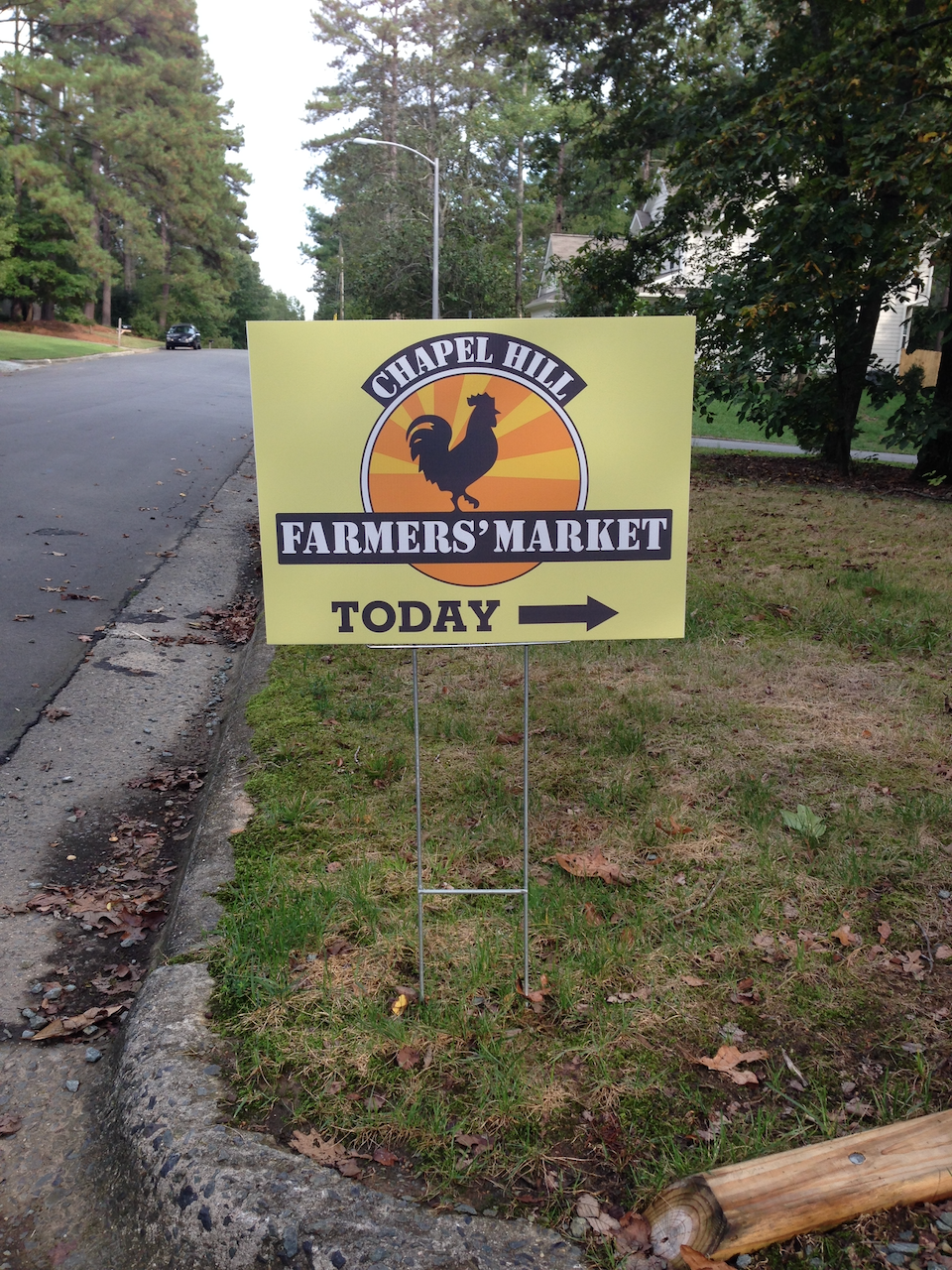 Photo of the Chapel Hill Farmers’ Market yard signs (photo via Kate Underhill)