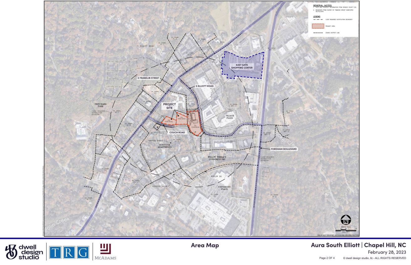 Area Map for development on 200 S. Elliott Road. The proposed project plans to include 330 multifamily use units and amenities such as a pool and fitness center. Photo via Trinsic Residential Group.
