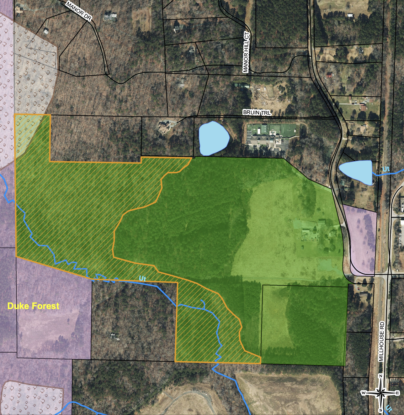 The 75-acre site located north of Chapel Hill. The county plans to sell the eastern 45 acres to a nonprofit for the purpose of creating a recreational playing field facility. (Photo via the Orange County government.)