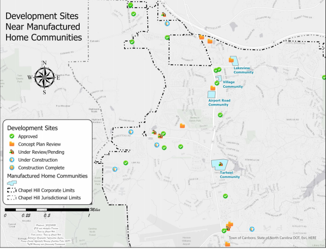 Map of Development Sites near manufactured home communities in the Chapel Hill-Carrboro area. (Photo Courtesy of Town of Carrboro)