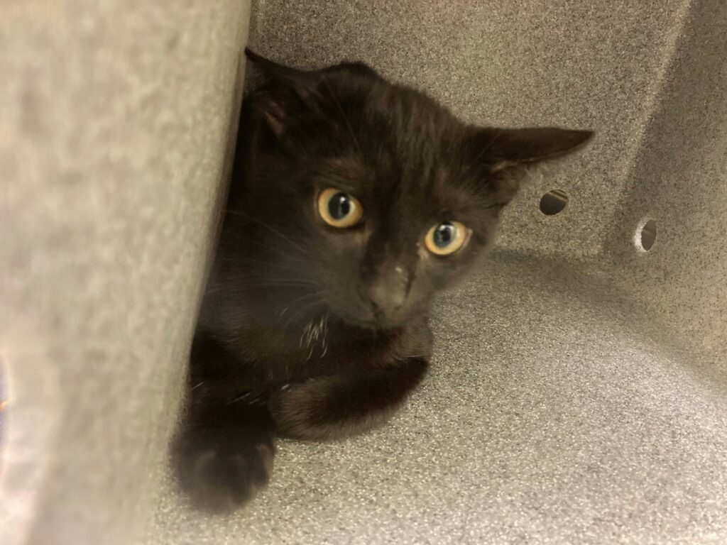 This is Violet, a barn cat up for adoption at Orange County Animal Shelter.