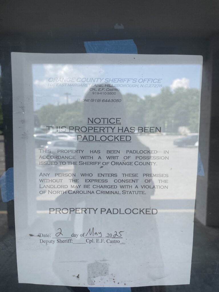 • Clothes Mentor in Chapel Hill abruptly closed its location in the shopping center along South Elliot Road, with the store’s website later saying it was due to “an unexpected turn in our lease negotiations.” The clothing shop described the closure as “not goodbye,” but a “be right back” with relocation plans expected to be announced in the coming weeks. As of July 1, nothing has been announced. And on May 2, the Orange County Sheriff’s Office padlocked the door to the space in accordance with a writ of possession.