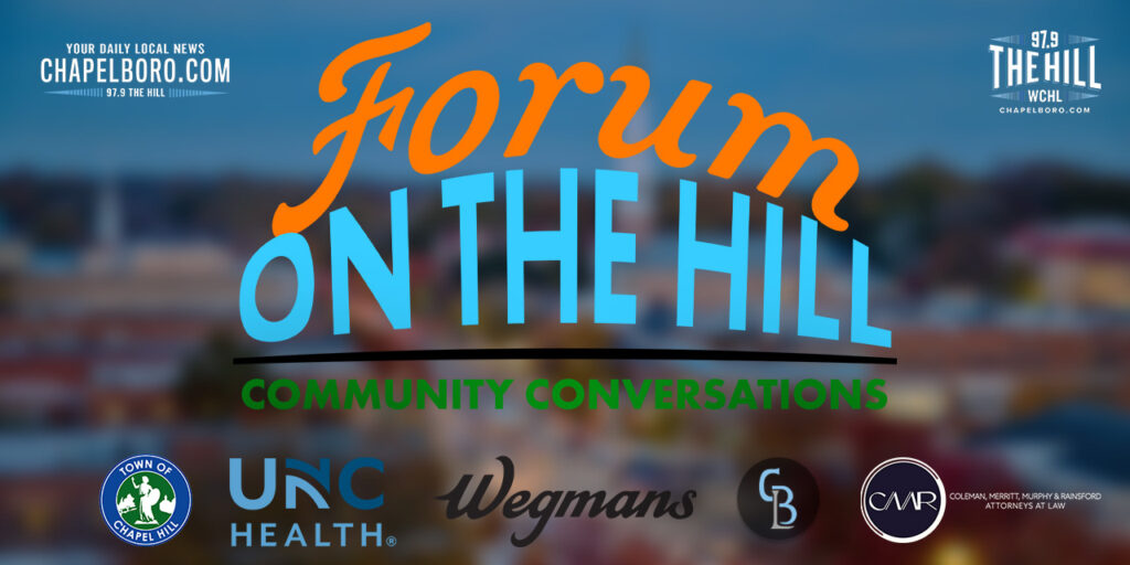 Join 97.9 The Hill and Chapelboro.com for the annual Forum On The Hill — presented by the Town of Chapel Hill, UNC Health, Wegmans, Coleman Merritt Murphy & Rainsford P.C., and The Law Office of Chris Barnes. Airing live daily, Monday, December 8 through Friday, December 12, from 3 p.m. to 6 p.m. and available the day after on-demand at Chapelboro.com, Spotify, or wherever you get your podcasts!