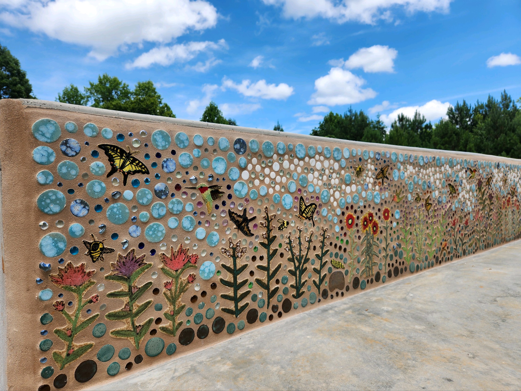 5th Pocket’s design includes a mix of quarter pipes, ledges, ramps and grind rails for skaters to use for tricks. Additionally, the park includes a ceramic mosaic along the backside of a larger quarter pipe that features native wildflowers and pollinators, which Bell described as a “very Hillsborough kind of thing to do.” The artwork was done by Peyton Flynn of Cloud 9 Clay.