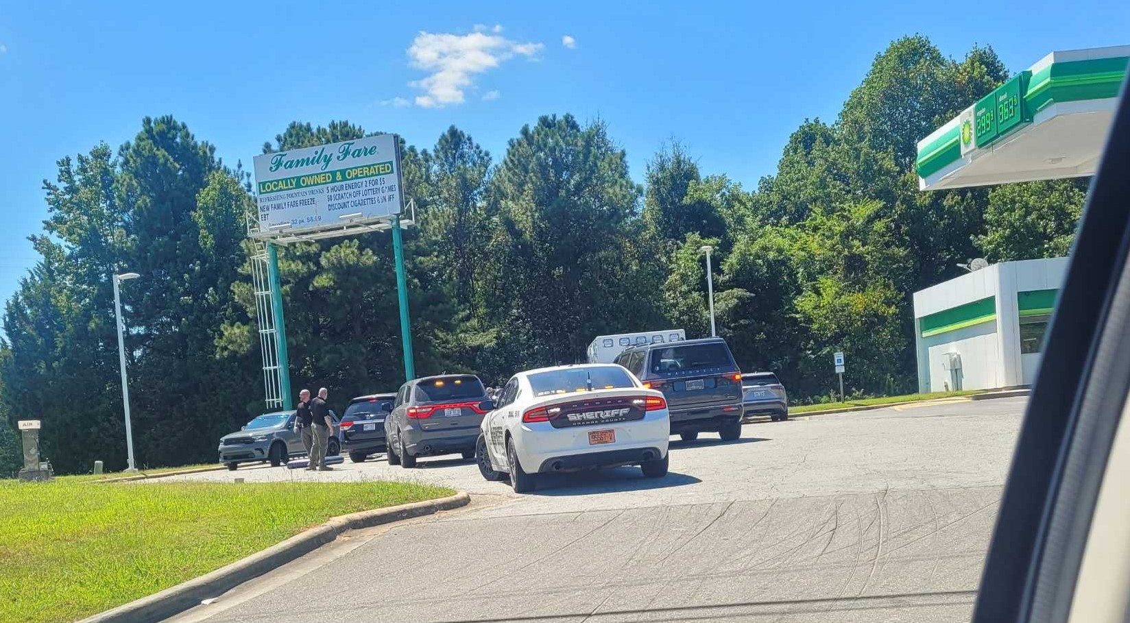 A picture of the law enforcement presence at the BP gas station located at 1811 NC-86 in Hillsborough. (Photo via Lana Pierce.)