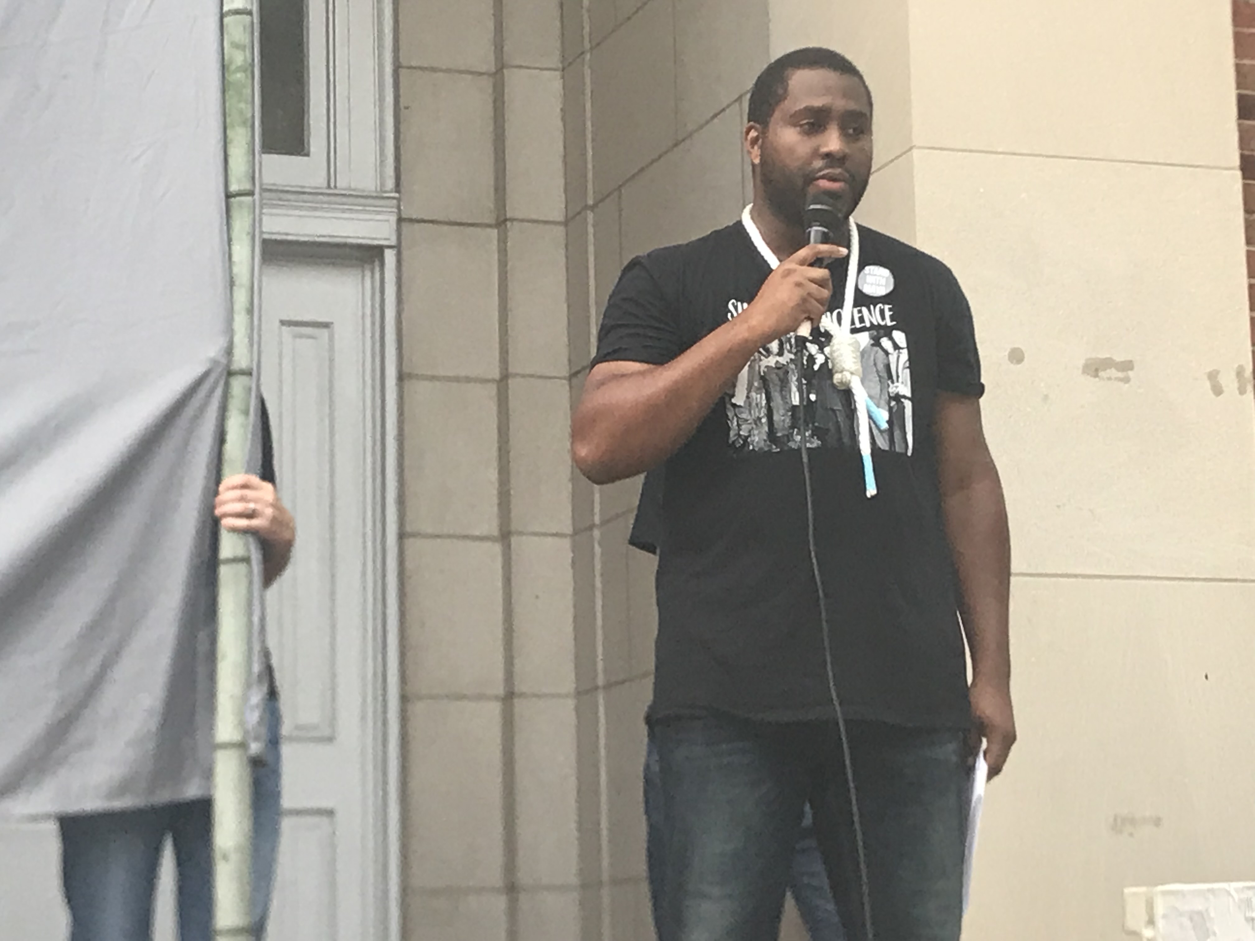 Jerry Wilson at a rally in August where he pledged to wear a noose on the campus until Silent Sam was removed. Photo via Blake Hodge.