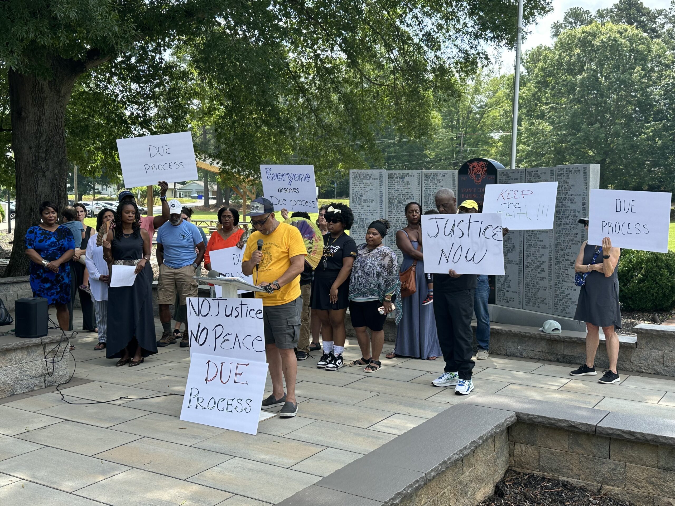 Coaches gather and speak to players before the game as Carrboro takes on Durham School of the Arts in boy’s soccer on Wednesday, March 3. (Dakota Moyer/Chapelboro.com)