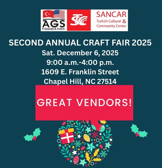 There will also be an opportunity to purchase special sales from the Sancar Treasures including Turkish bowls, children’s books, hand crocheted coasters, Turkish coffee and tea sets, beautiful bowls, decorative items, framed Turkish drawings and artwork, miniature crafts of Sultans, and so much more.