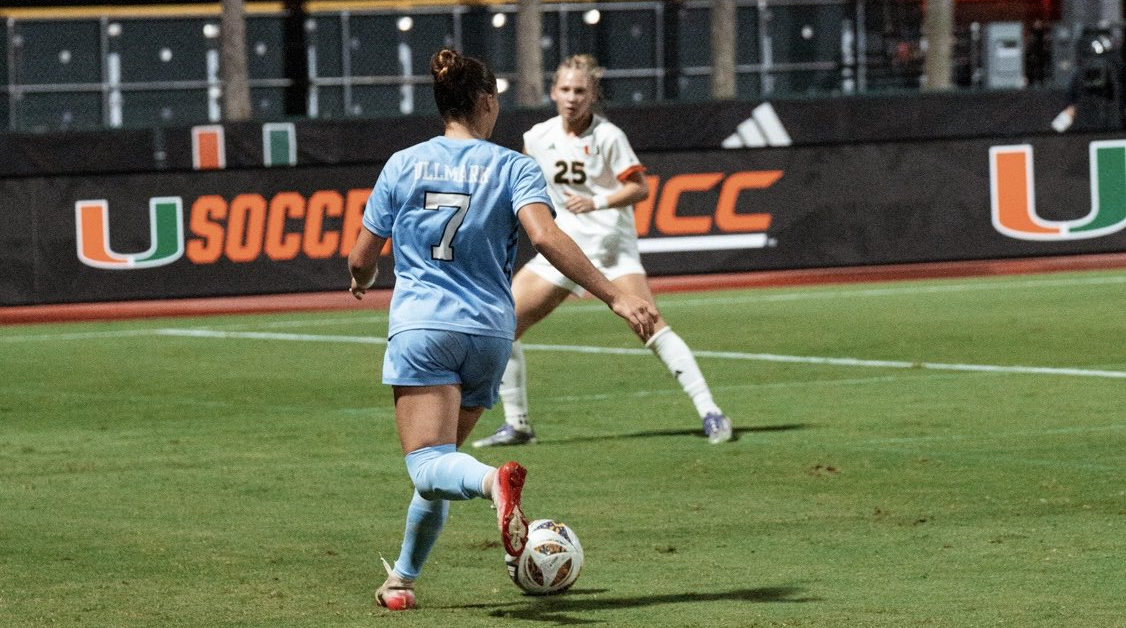 UNC Women's Soccer Loses at Miami on Late GoalA Miami goal in the 77th minute broke a 1-1 tie and sent UNC to a 2-1 defeat Thursday night in Coral Gables. It’s Carolina’s second loss in its last three outings. The two teams played a scoreless first half, despite UNC holding a decisive 6-0 advantage in total shots. The Hurricane goalkeeper stopped both […]