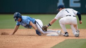 kane kepley stolen base action arizona super regional 060725 unc baseball X