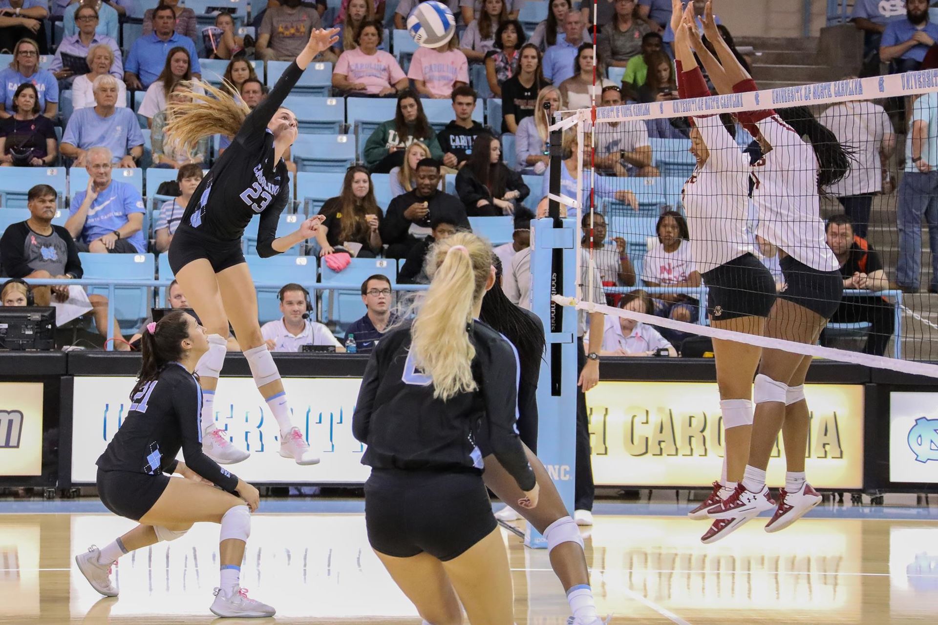 Parker Austin led the way offensively with 15 kills, while freshman star Lauren Harrison added nine to the cause herself on a day where the Tar Heels posted an incredible team hitting percentage of .343–the second time in the last two weeks they’ve hit above .300.