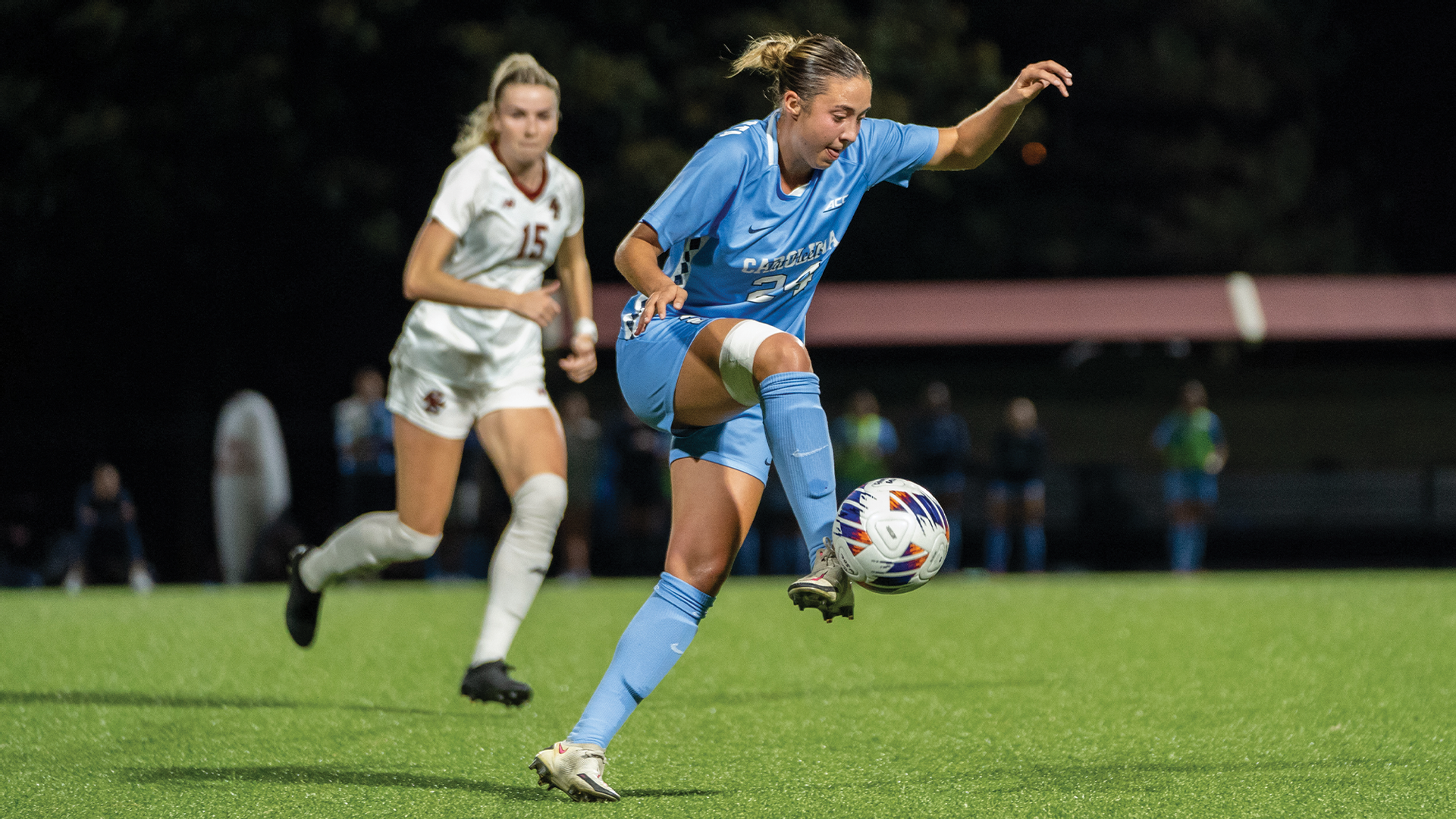 Carolina dominated possession against the Eagles, who came into the night winless in ACC play, but found itself playing catch-up for much of the night. Boston College got on the board in the 32nd minute with its first shot on goal of the night and held that lead until halftime, despite shots on goal from Isabel Cox and Bella Sember.