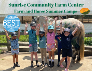 At Sunrise Community Farm Center, we offer a hands-on summer experience modeled after the rhythm of a traditional family farm. Here, nature lovers and budding equestrians build life skills and empathy by “learning by doing” alongside our animal teachers and expert mentors. Each week is rounded out with shared adventures in creek stomping, swimming and water play, and time for free play. This is a Chapelboro Summer Camp featured listing. For more information, see above.