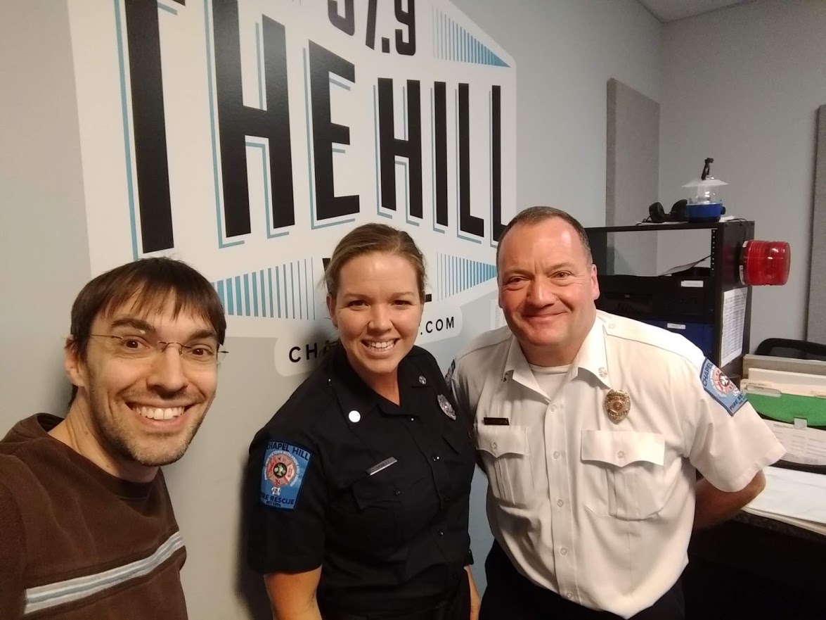 Matt Sullivan and Emily Powell stop by from the Chapel Hill Fire Department to discuss holiday fire safety – and the CHFD’s “Keep the Wreath Green” initiative.