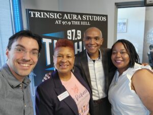 Aaron discusses the event with Pat Richardson, Creighton Blackwell, and LaToya Alston.