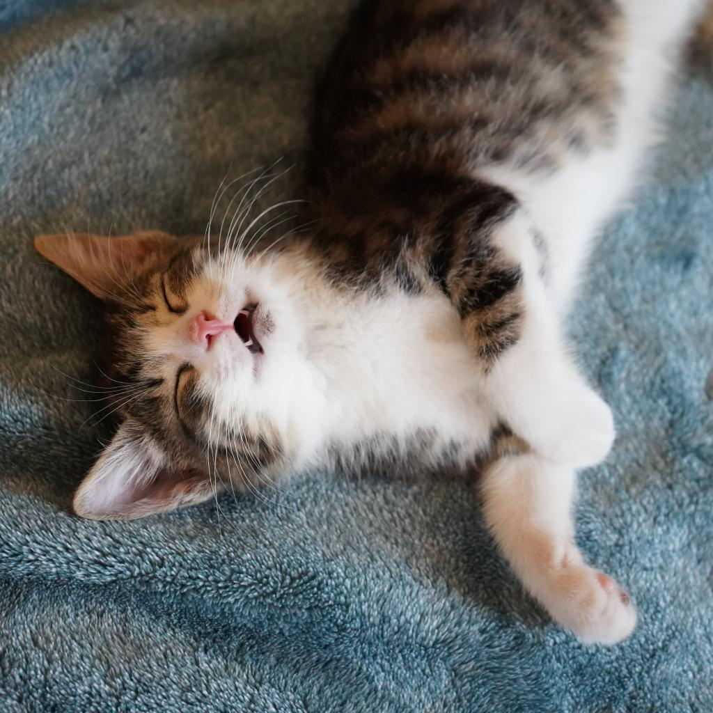Beanie is an adorable, companionable 2 month old female. She’s very curious and will love to be around you. She’s an adventurous, sweet kitten that would love a house with lots of activity or someone who will be around to play with her. She’ll also love a cuddle when she gets tired.