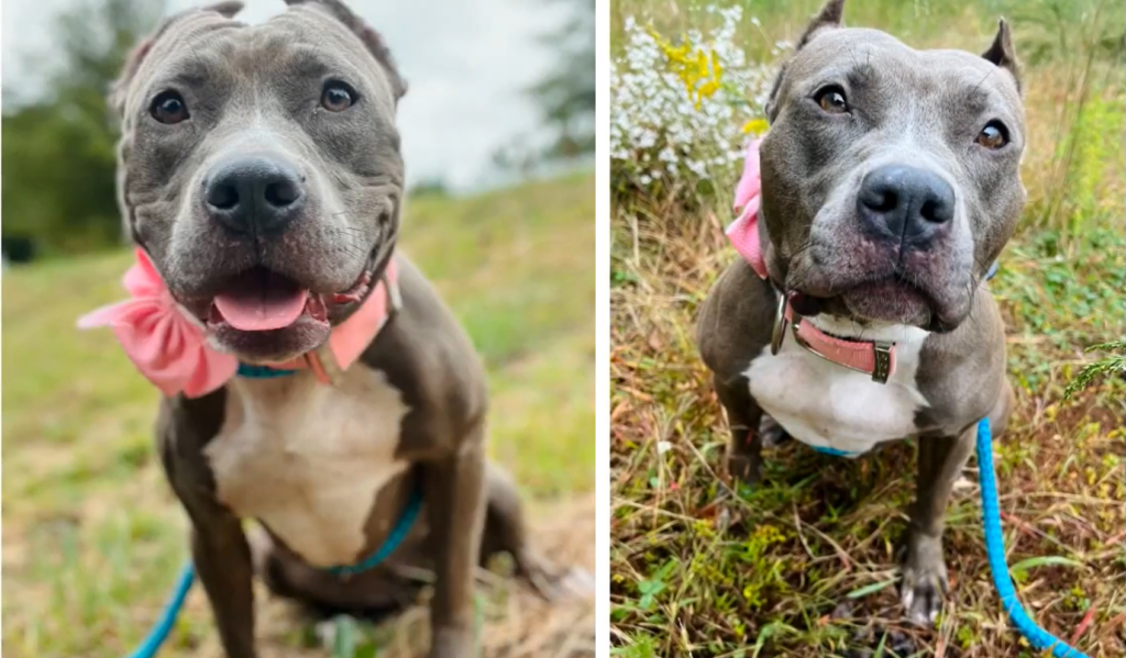Mazikeen is a sweet girl, a female blue and white pit bull terrier, a little over two years old, and looking for her forever home! She loves to be around people and get plenty of pats on her big ol’ pittie head! She loves to explore, she’s happy to accompany you on a walk as well as fall asleep on your lap once you’ve gotten home and she’s had a treat (or two, or three!)