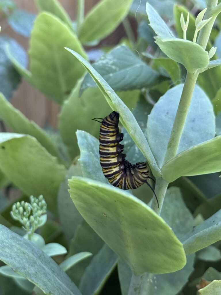 Day 63: We buy loads more milkweed from our neighbor after the internet reveals that a single caterpillar can eat three entire plants. They are worse than tween boys, two of whom also live in our house. The new plants come with more caterpillars. Our daughter dances around the yard.
