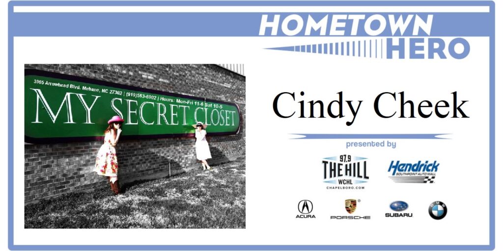 Cindy Cheek is one of the driving forces behind My Secret Closet, a Hillsborough-based consignment store. Nominated as a Hometown Hero for her efforts to use My Secret Closet as a “force for good,” her ongoing attitude to help and her seemingly boundless enthusiasm for finding things new homes where they’ll find new lives, congratulations to Cindy Cheek!
