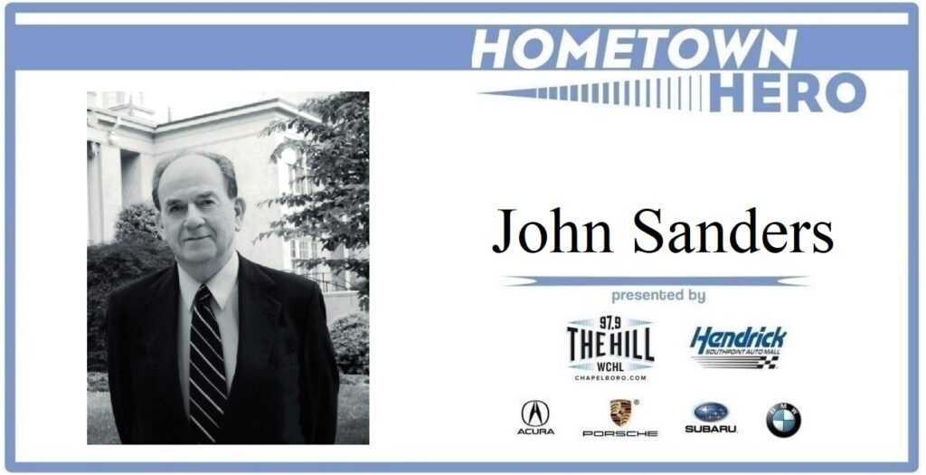A posthumous Hometown Hero recipient, Sanders died on Wednesday, September 22, at 94. He was director of the UNC School of Government from 1962 to 1973, and again from 1979 to 1992 after serving on its faculty. Called the Institute of Government at the time, the main building of the School of Government at UNC is named the Knapp-Sanders Building partly in honor of John Sanders and his decades of service.