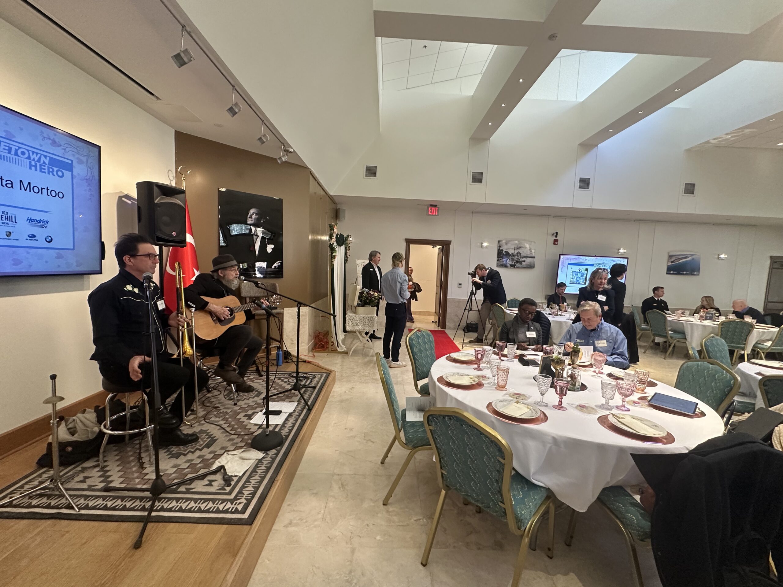 Saturday, February 7th, marked another special occasion in Chapel Hill as community members gathered for The Hometown Heroes Luncheon, recognizing heroes featured on 97.9 The Hill and Chapelboro.com during 2025. The event was made possible by Hendrick Subaru Southpoint and hosted at the Sancar Turkish Cultural and Community Center. An amazing lunch was provided by Mediterranean Deli and elegant vintage tablescapes were made possible by Southern Vintage Table.