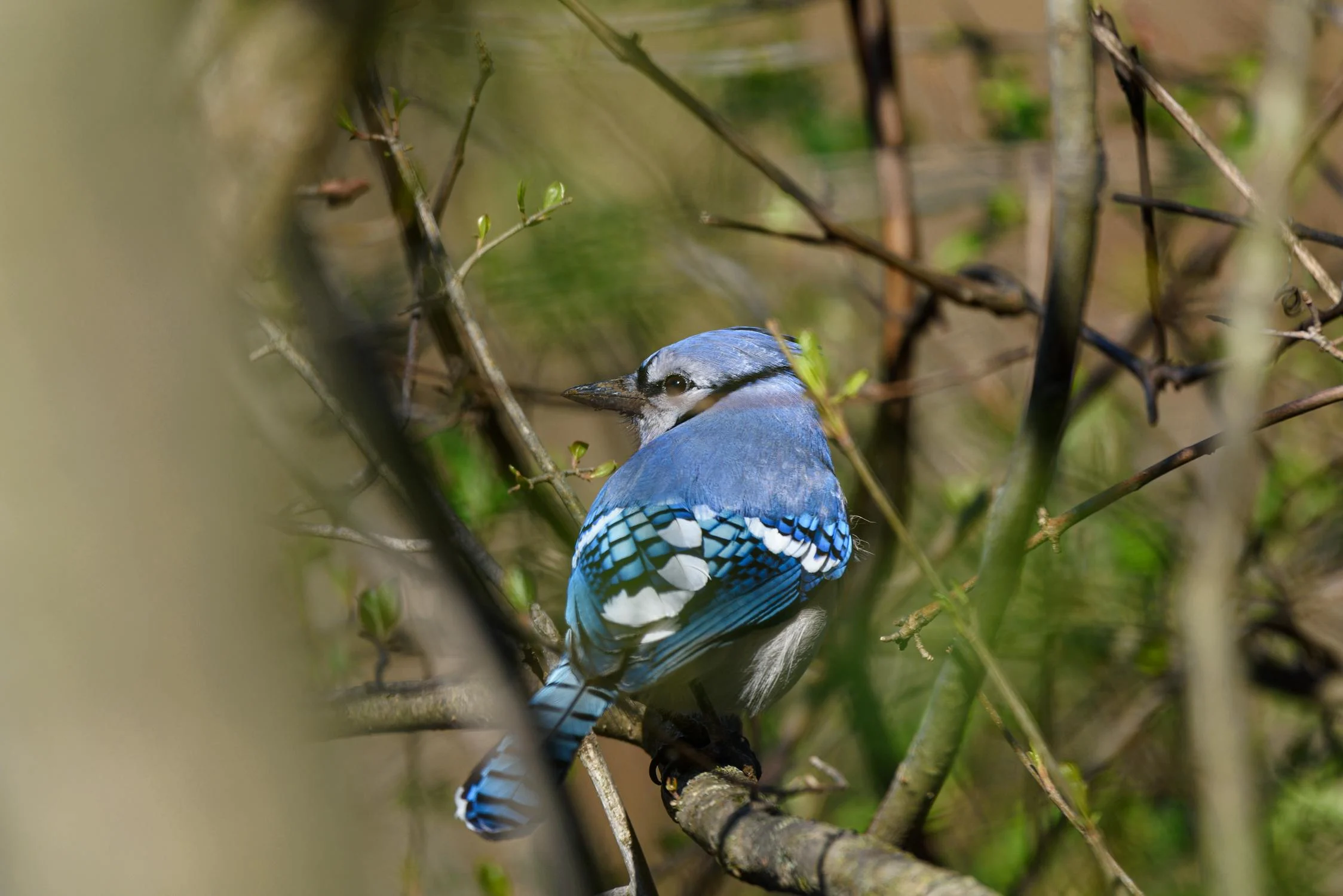 free-photo-of-vibrant-blue-jay-perched-among-branches