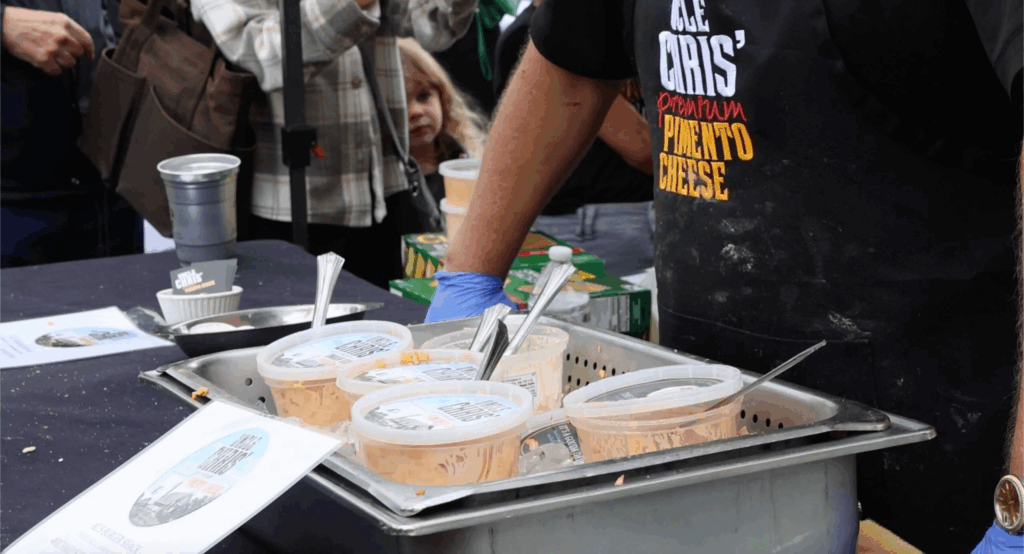 Carol Henderson and Linda Stevens were among the many customers milling about the marketplace. The friends, each from Georgia, grew up loving pimento cheese. Henderson said her mom always made it for her. She has that recipe, but she usually buys from a local market instead of making the spread herself. So, when she and Stevens read about the festival in a newspaper, they drove six hours to attend.