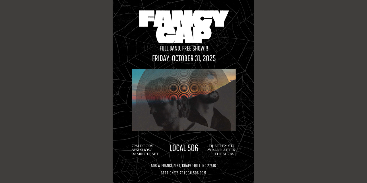 This week, Aaron welcomes the band Fancy Gap back to the studio, ahead of a Halloween show at Local 506. Fancy Gap is the acclaimed duo of Stuart McLamb and Charles Crossingham; they drew raves in 2024 for their self-titled debut album, and they’re hoping to release a second album next year. In the meantime, though, they’ve been busy with live performances, with shows at the State Fair, the Shakori Hills festival, and the River Park Concert in Hillsborough – and on Halloween night, they’re welcoming everyone to Local 506 for a free show, starting with a full band performance at 8 p.m. with a DJ set from McLamb afterward.