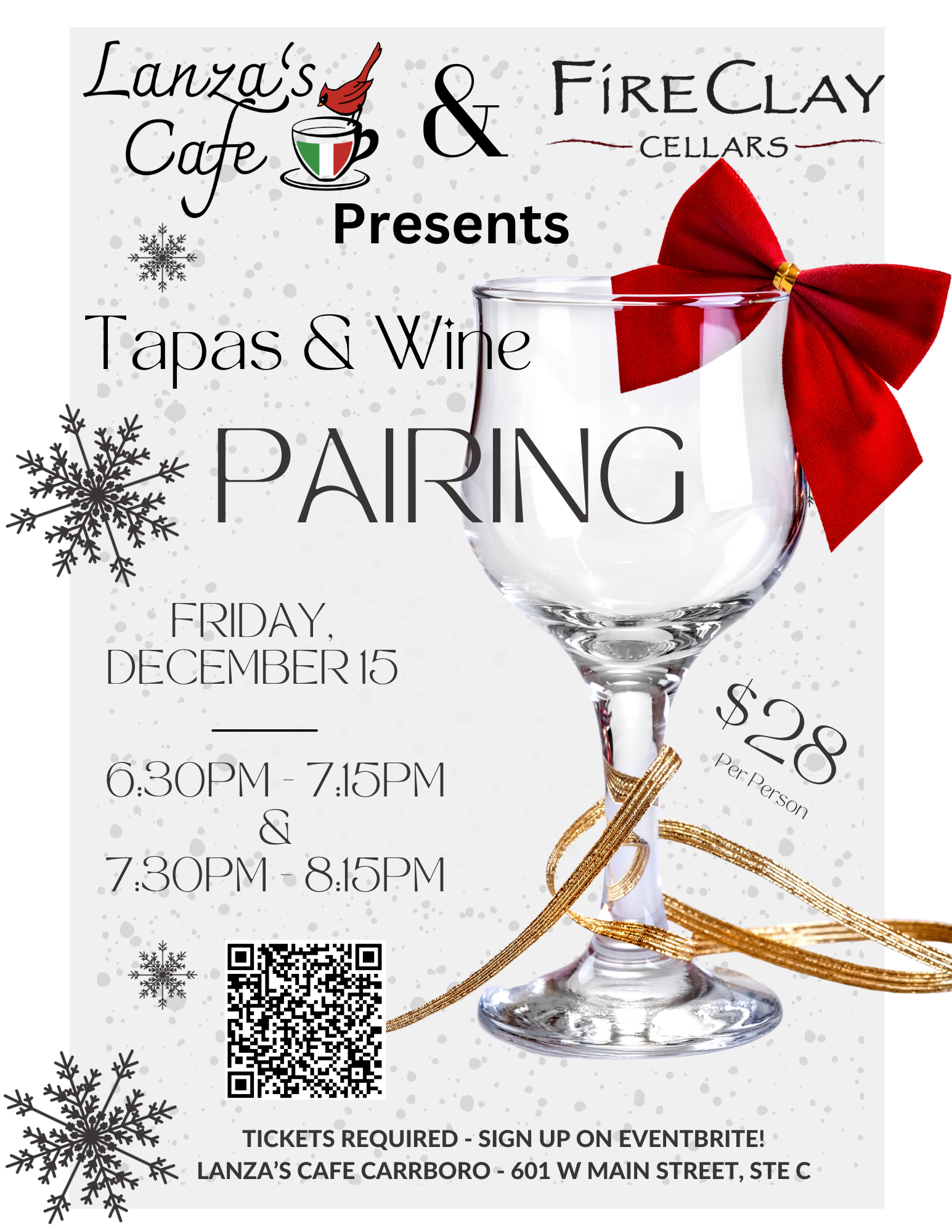This Friday, come out to Lanza’s for a wine and tapas pairing event. Lanza’s is partnering with FireClay Cellars for a night of delicious wine and Italian food. To get your tickets, click here.