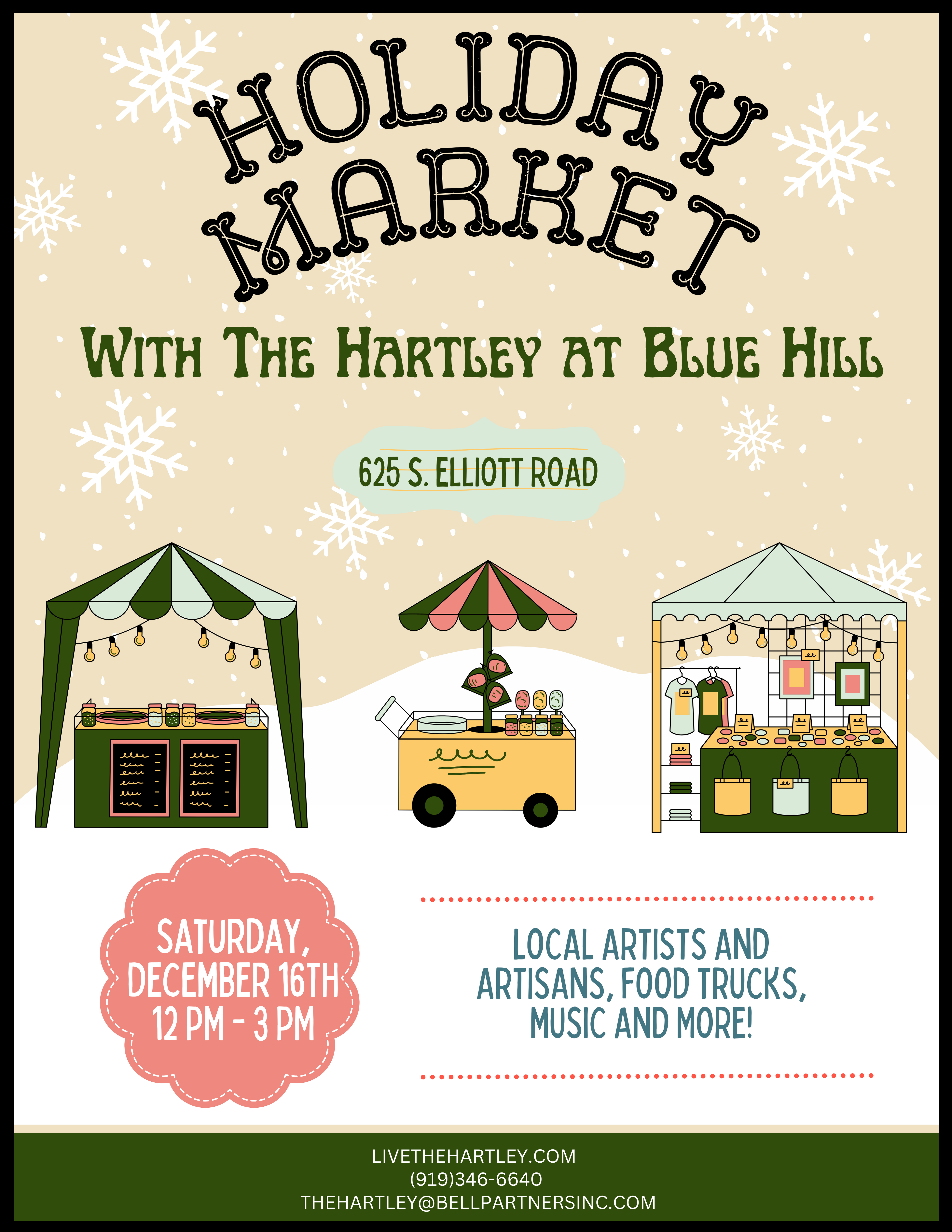 Finish up your holiday shopping this weekend at The Hartley at Blue Hill. They are holding a Holiday market, featuring local artists and businesses. While you’re shopping, enjoy some food and drinks as well. Click here for more information.