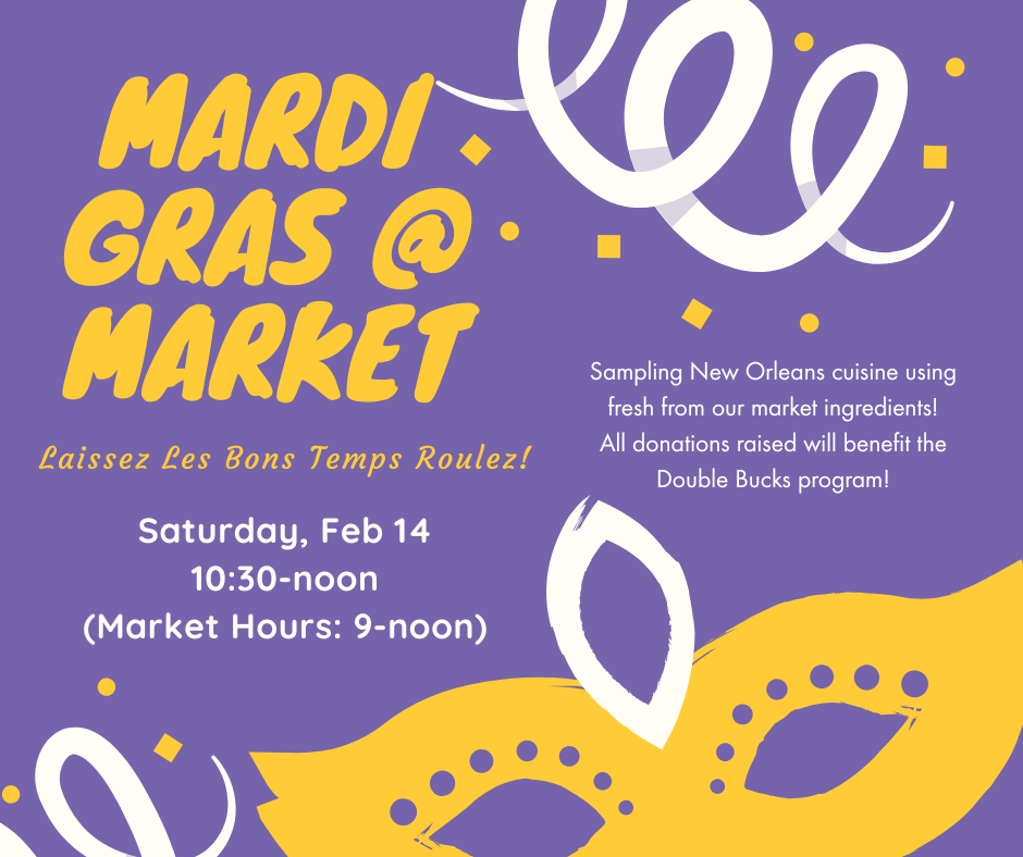 This Saturday morning, shop at the Chapel Hill Farmers’ Market. Shop from local vendors and score delicious produce. Chapel Hill Farmers’ Market is operating in their winter hours. During the market this weekend, Chapel Hill Farmers’ Market will be celebrating Mardi Gras. Claudia Sanders of Good Intentions Culinary Services will be sampling New Orleans cuisine using fresh ingredients from the market. Click here for more information.