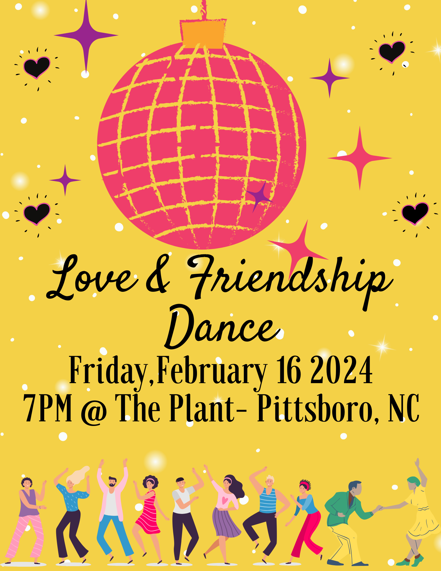 Come out and dance at The Plant in Pittsboro. Bring your friends and celebrate friendship and love this weekend at The Plant under a disco ball. For more information, click here.
