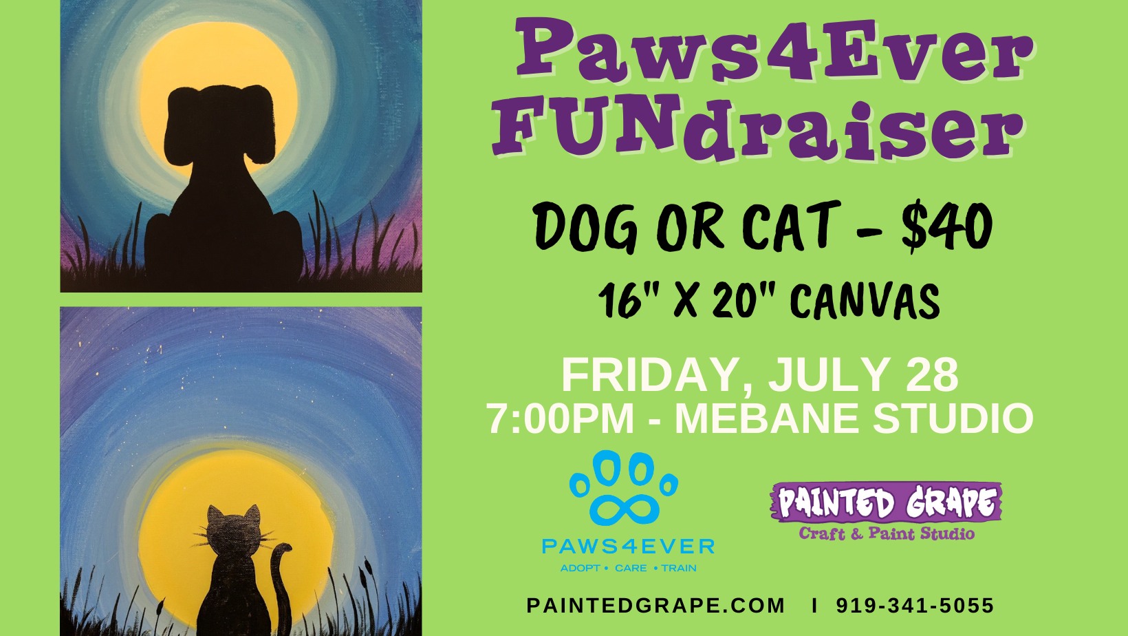 Come out and paint your dog or cat for a good cause this weekend. Paws4Ever is holding a painting class fundraiser this weekend at Painted Grape. A percentage of the profits will be going to benefit Paws4Ever. Click here to register.