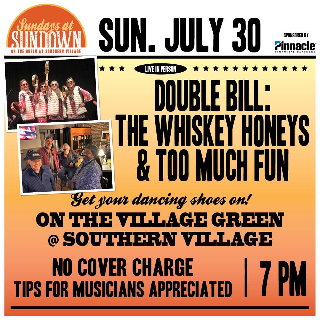 Come out Sunday night to Southern Village for Sunday Night Live on the Village Green for some live music. It’s a double bill this weekend with The Whiskey Honeys and Too Much Fun. Tips for the musicians are encouraged, but there’s no cover charge. Click here for more information.