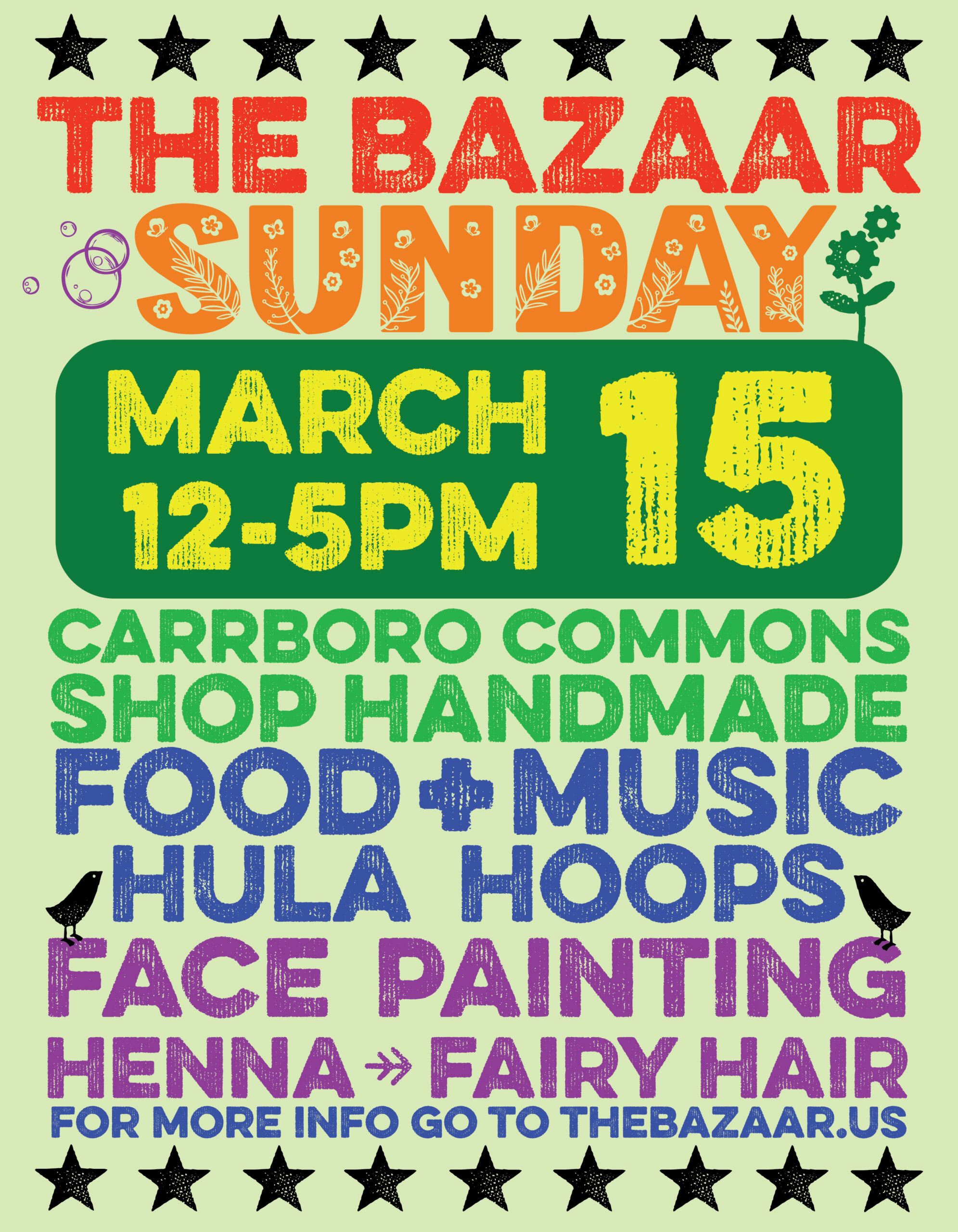 The Bazaar is back this weekend in Carrboro to start the 2026 season. Shop handmade creations from 30 talented makers, get some body art and fairy hair, enjoy some delicious food and drink, and more. Click here for more information.