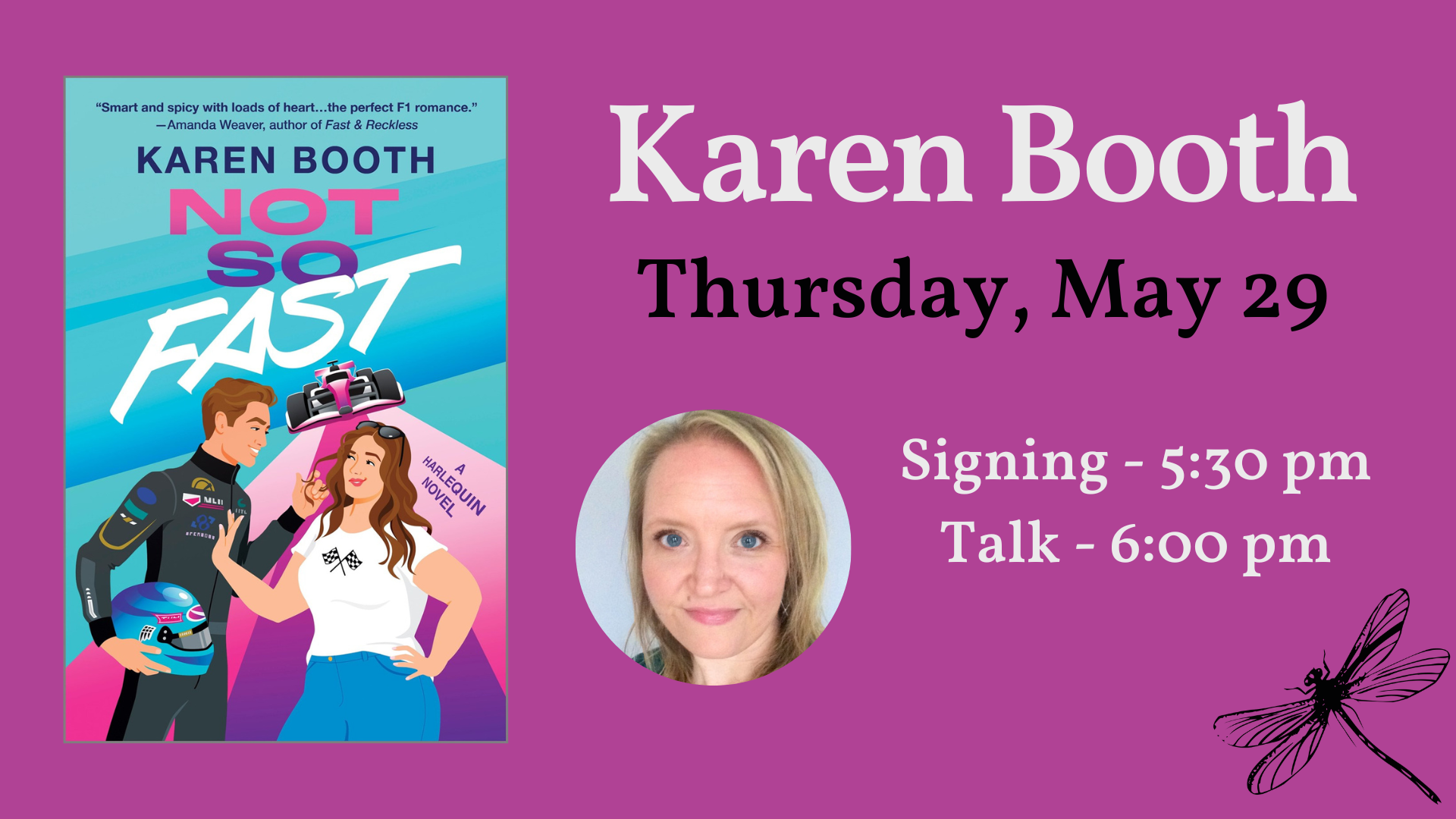 Author Karen Booth will be at Flyleaf Books for a signing and to talk about her new book, Not So Fast, an enemies to lovers Formula One story. The story centers around a podcaster who critiques a struggling British driver. Upon meeting the driver on the tracks, sparks fly! Click here for more information.