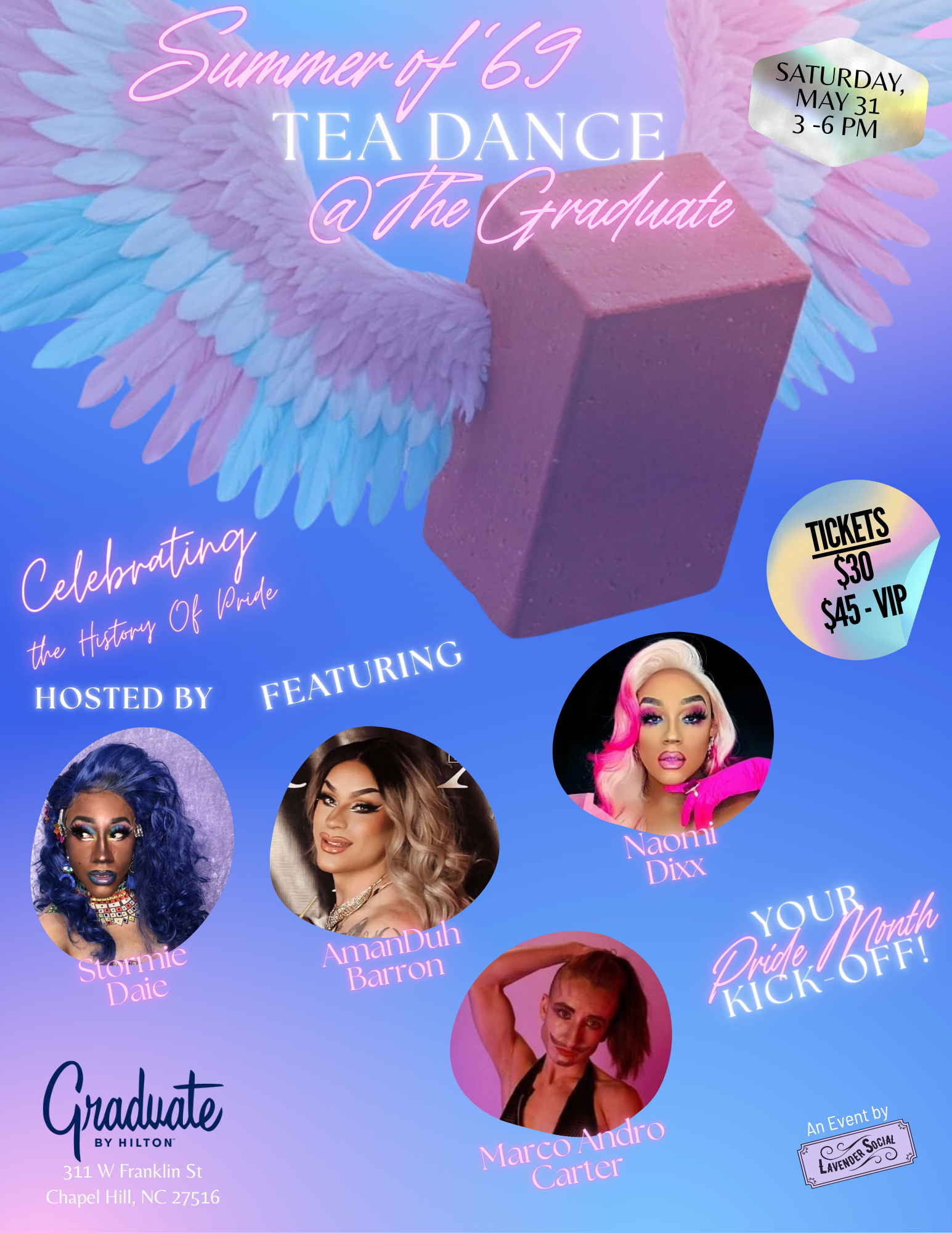 Kick off Pride Month with the Summer of 69 Tea Dance, celebrating the history of Pride. Stormie Daie will host the show with performances by AmanDuh Barron and Noami Dix. For more information, click here.