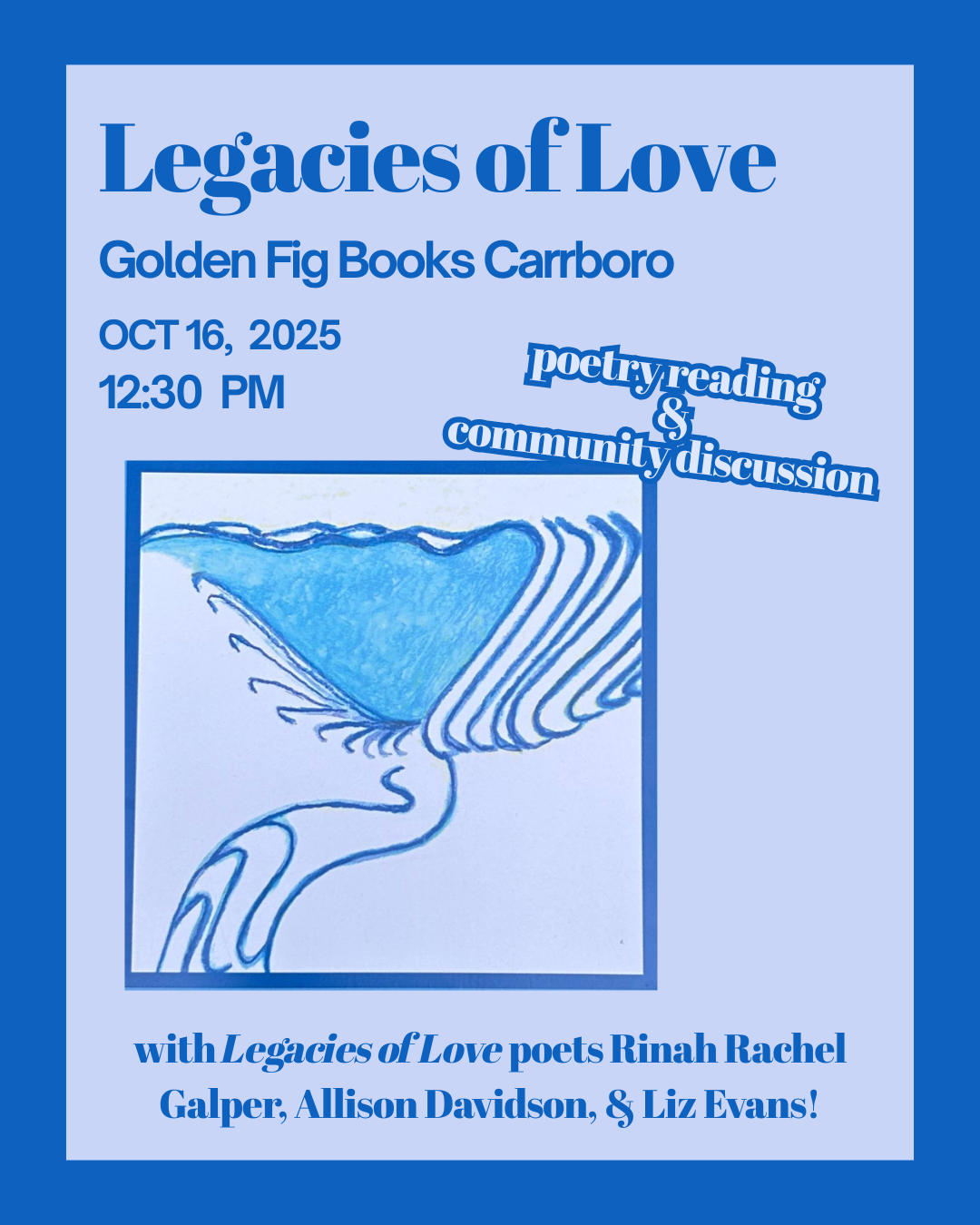 Golden Fig will be holding a poetry reading and community discussion event. Rinah Rachel Galper, Allison Davidson, and Liz Evans will be reading from their poetry collection, Legacies of Love. Afterwards, they will be leading a discussion. For more information, click here.
