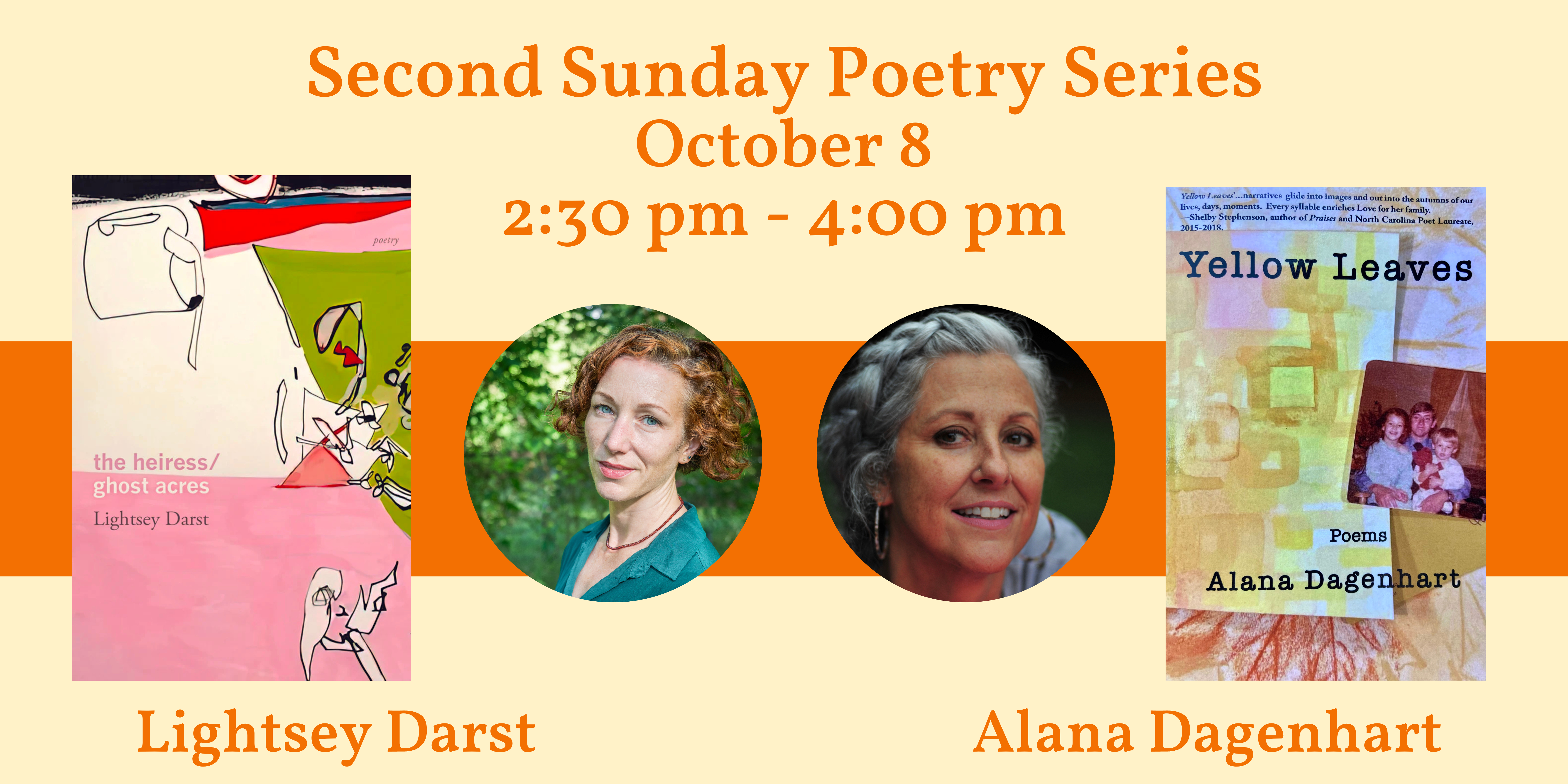 Flyleaf Books’ Second Sunday series continues this weekend with two poets reading passages from their new books. Lightsey Darst and Alana Dagenhart will be on-hand to share poems from their books. There will even be time for an open-mic so you can share your own original poems. For more information, click here.