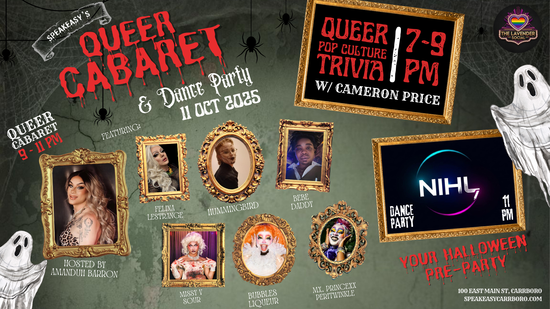 Come out to Speakeasy Carrboro’s Spooky Queer Cabaret and Dance Party. Come in costume and enjoy a night starting with queer pop culture trivia followed by the Queer Cabaret, hosted by AmanDuh Barron with performances by Hummingbird, Felina LeStrange, Missy V Sour, Bubbles Liqueur, Bebe Daddy, Mx. Princexx, and Peritwinkle. Click here for more information.