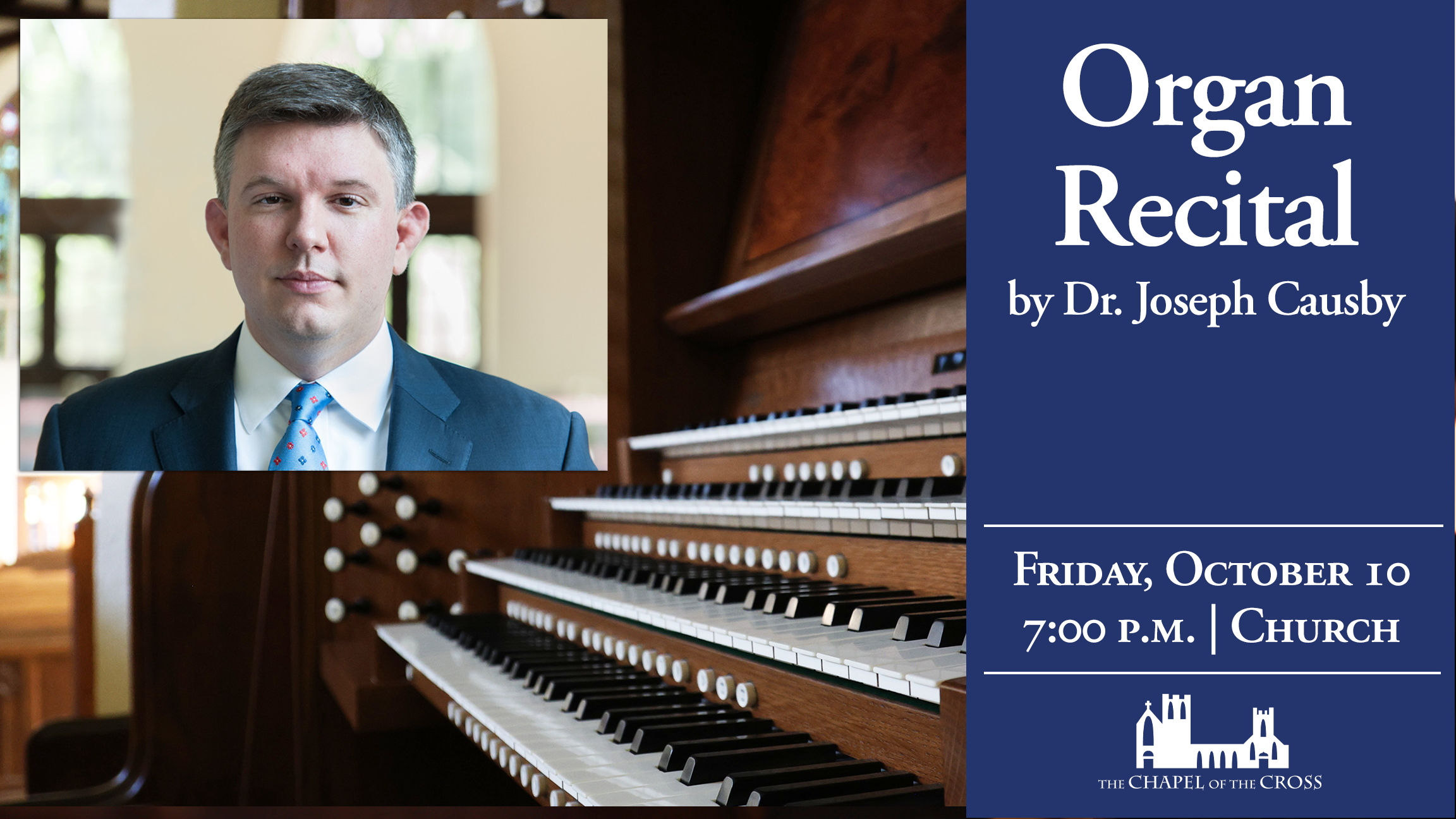 Chapel of the Cross’ organist Joseph Causby will be performing a recital this weekend. The recital will include music by Bach, Guilman, and George Akerley’s “A Sweet for Mother Goose.” Click here for more information.