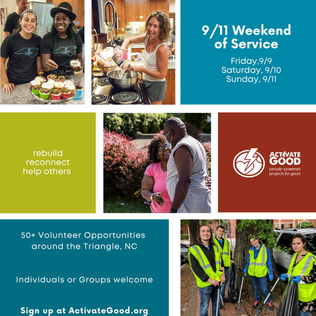 Honor the victims of 9/11 with Activate Good. They have organized several events around the Triangle to honor and remember the victims, such as garden maintenance, donation sorting and more. To learn more about what is being offered and how you can help, click here.