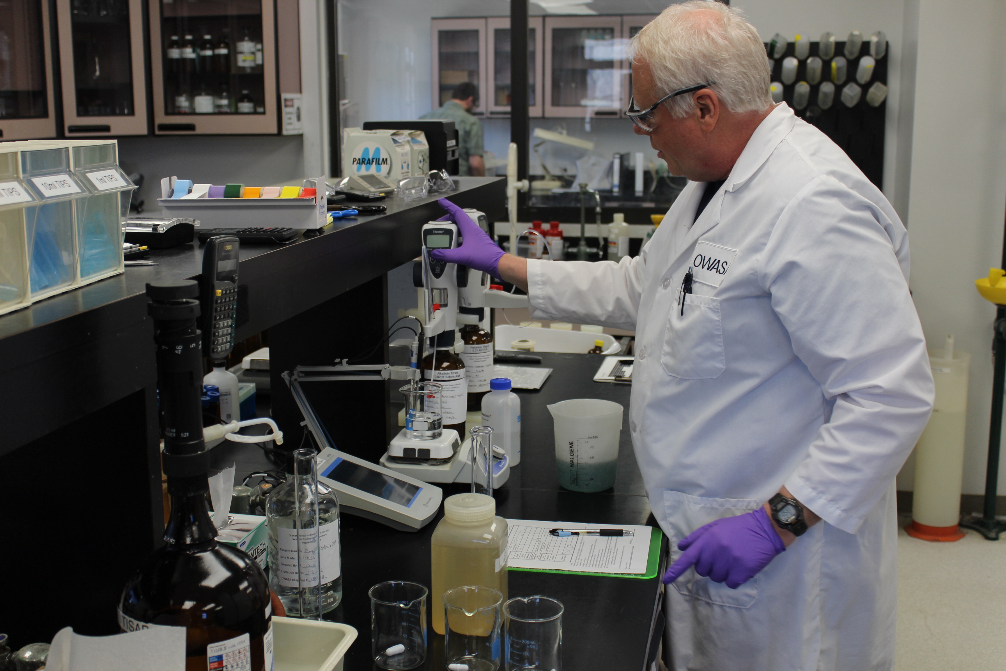“It’s a whole team effort,” said Harwell. “We have three lab analysts and then myself in the lab, and then we have eight plant operators — so we’re all doing testing. The analysts go out to the lakes and sample the water out of our source water before it’s received any treatment. We’re also testing the water, you know, once it’s made its way to the plant, the operators are testing the water continuously 24/7 to make sure that the processes are running smoothly.”